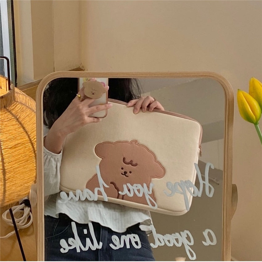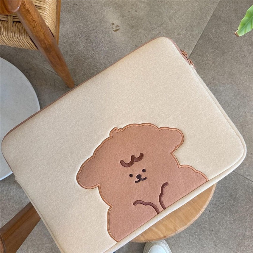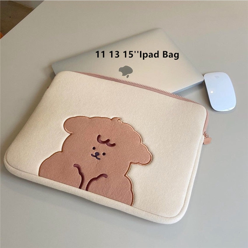 11 13 inch Laptop Tablet Case Korean Bear Dog Pouch For Macbook Air Pro Retina 9.7 10.8 13.3 15 15.6 Inch Ipad Inner Sleeve Bag